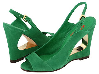 I am a big Michael Kors fan (speaking of which have you heard all of the Project Runway drama? I hope when the show makes the jump to Lifetime its still great) and these wedges are delightful. There have been tons of uber creative heels and wedges this season, but the cut outs on this pair are just dramatic enough for my taste. The green is perfect to add a punch of color to black and blue ensembles and you can totally rock these with your florals too. LOVE THEM!